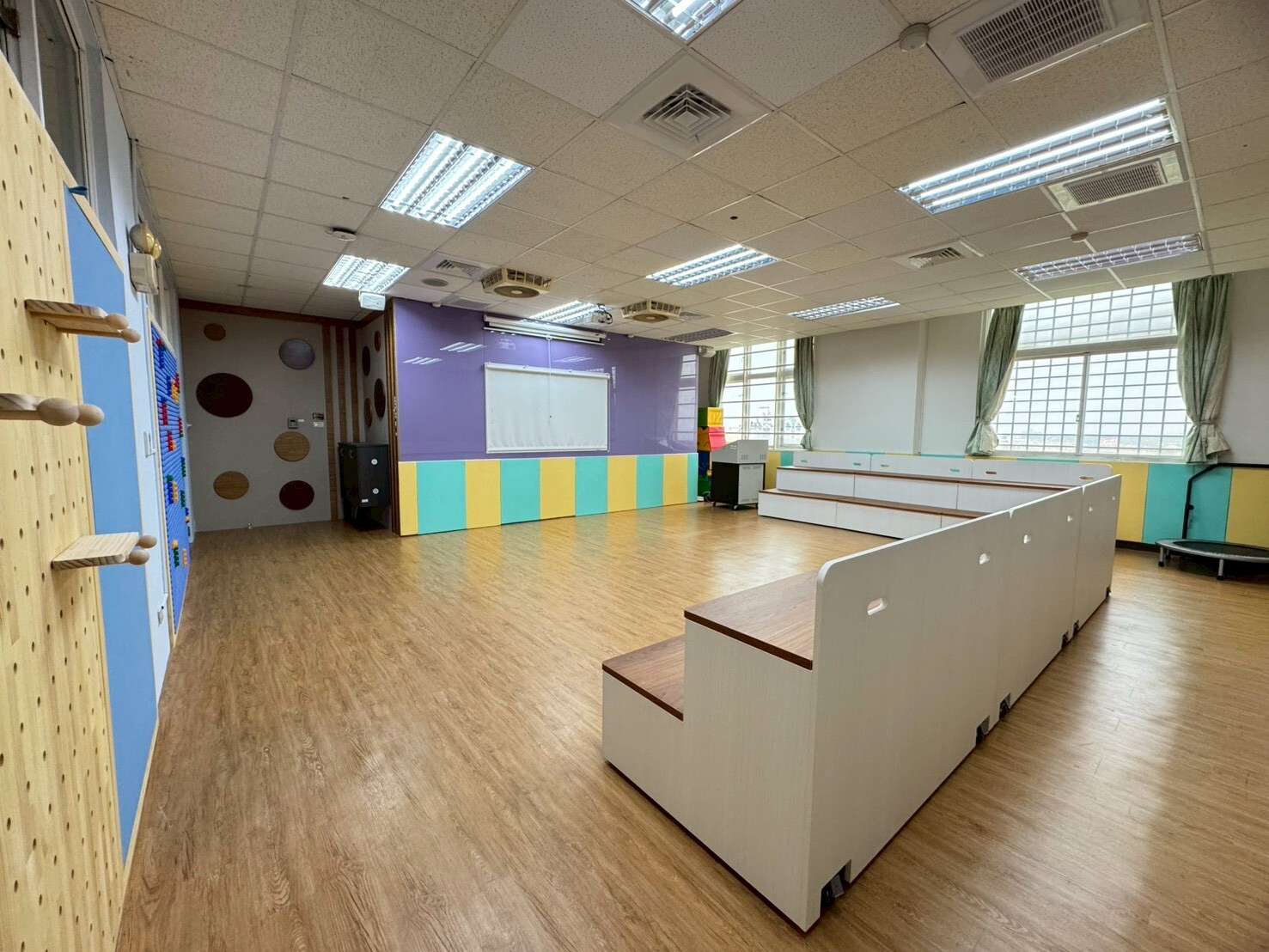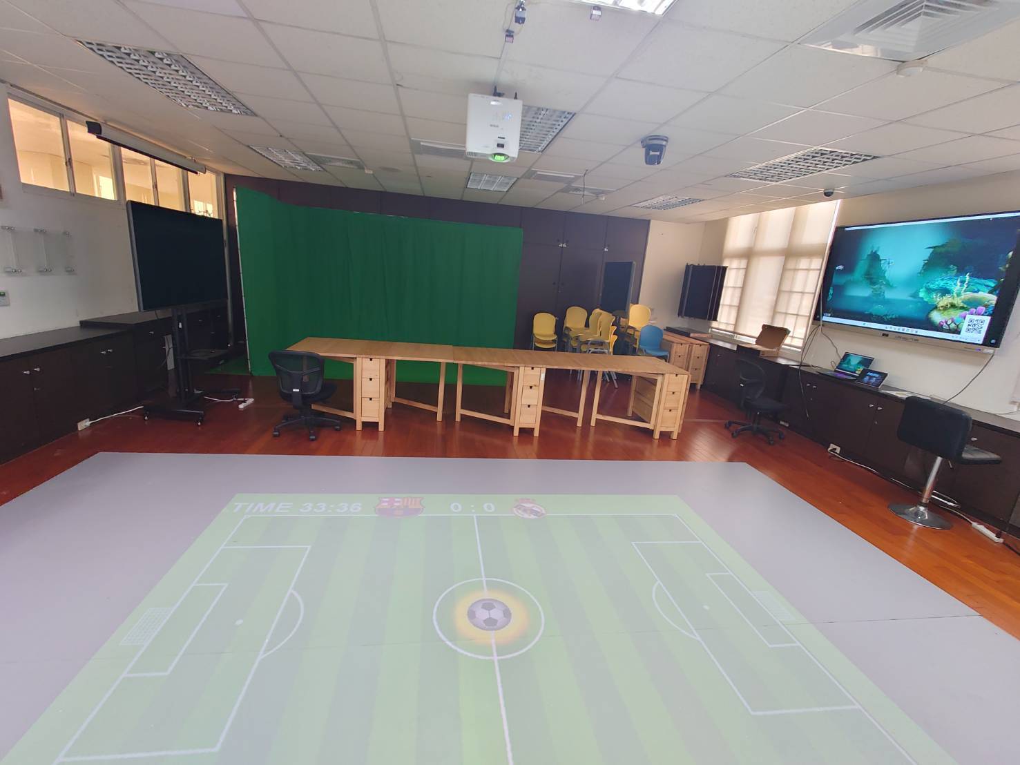 木質地板、XR實境教學與虛擬人互動系統、多元智能訓練系統、移動式液晶螢幕、電子白板(含嵌入式白板)、超短焦投影機、數位講桌、電動銀幕、錄製設備、教具櫃(含各項教具教材)。 |